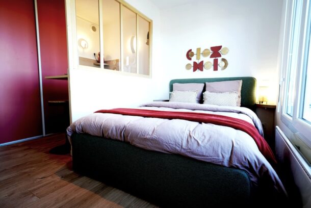 Venez découvrir cette grande suite à l’ambiance très Cosy, située idéalement à deux pas de la gare de Caen et proche de toutes commodités !